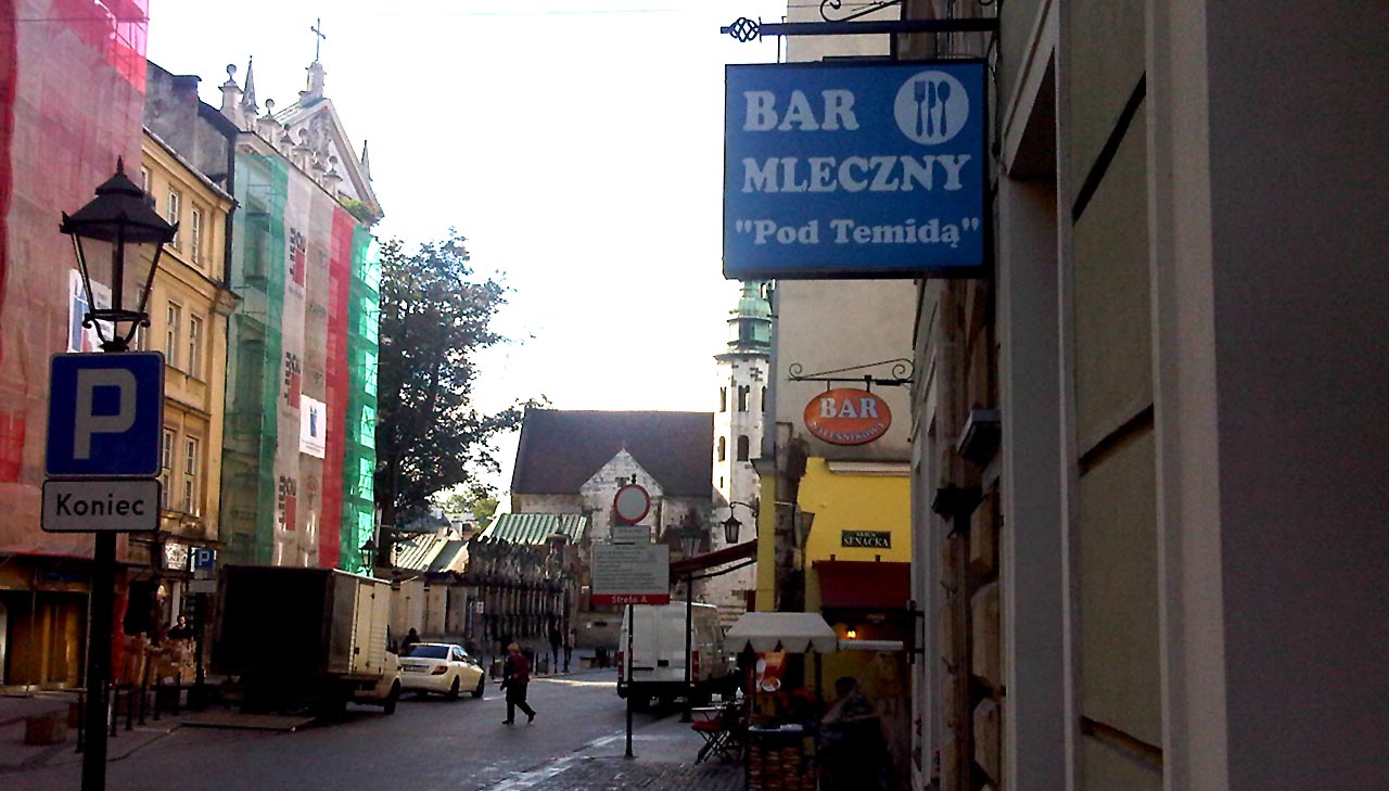 Бар, где готовят самую обыкновенную домашнюю еду. Подливка, котлеты, пюре, традиционные польские супчики и блинчики с творогом, сметаной и джемом на десерт. Полноценный обед здесь обойдётся вам не больше чем в 11-12 злотых. А тот факт, что еда уже готова и лежит в специальных контейнерах, поддерживающих тепло, значительно сократит время выбора и приготовления выбранного вами блюда.